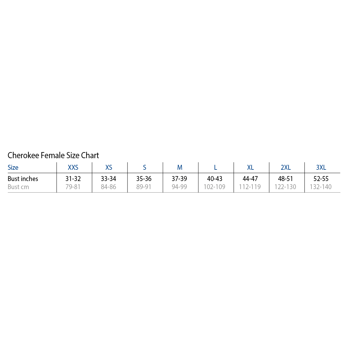Bust (inches) 31-32 33-34 35-36 37-39 40-43 44-47 48-51 52-55
