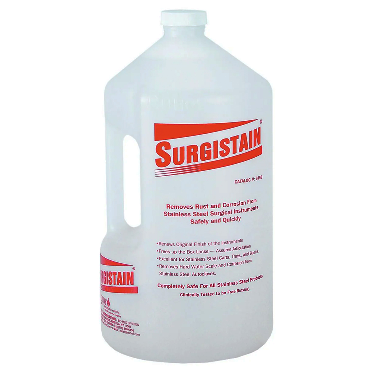 The Ruhof Stainless Steel Instrument Staining and Rust Remover Surgistain is a specialized cleaning product designed for the maintenance of surgical instruments and other stainless steel equipment. Here’s a breakdown of the key features, benefits, and usage instructions: